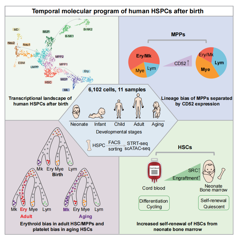 血液病医院程涛/朱平/胡林萍团队揭示人出生后骨髓造血干祖细胞在不同年龄的变化特征